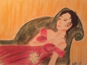 Rikke arbejder i olie, akryl, akvarel, pastel, tush, blyant og kul på papir og lærred.
