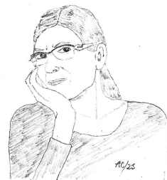 Anita Christensen selvportræt i tusch.