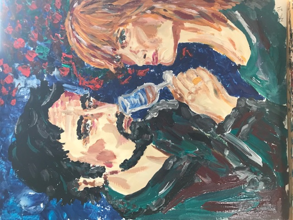 Akrylmaling på papir 32 cm x 41 cm. Copyright Rikke Aarøe Carlsen.