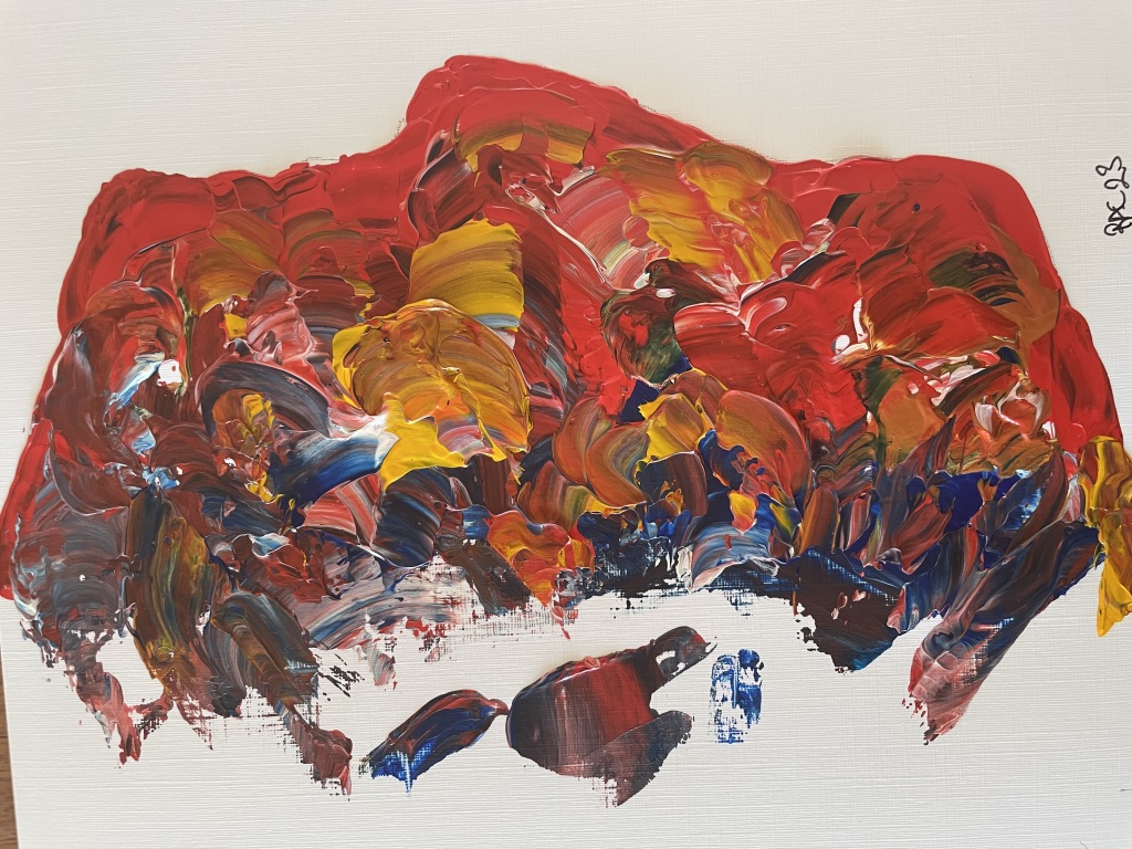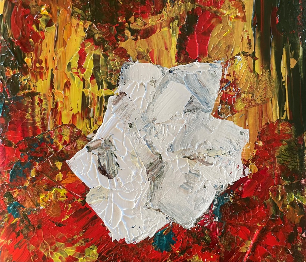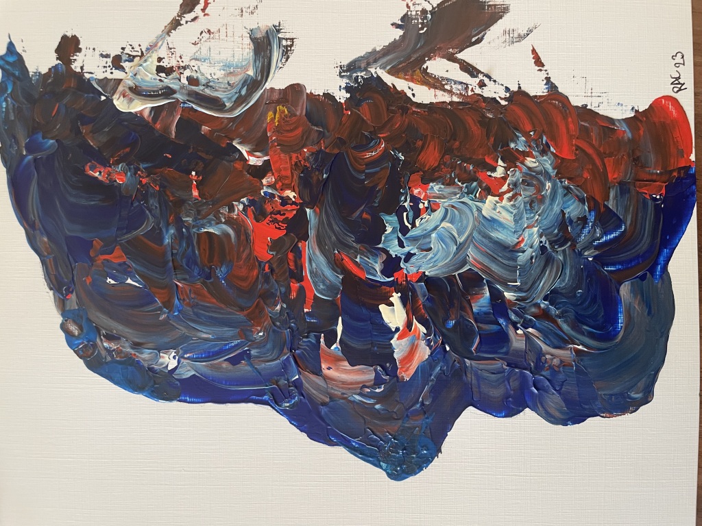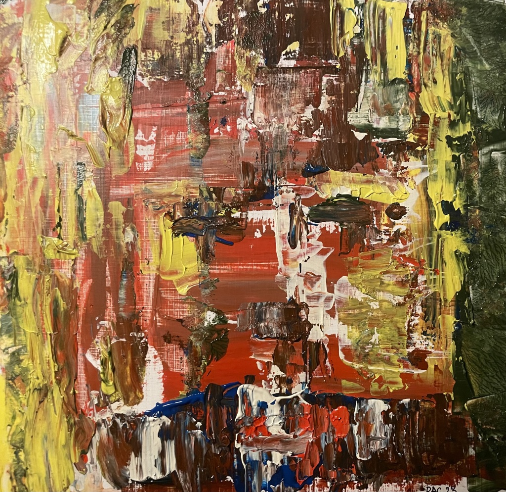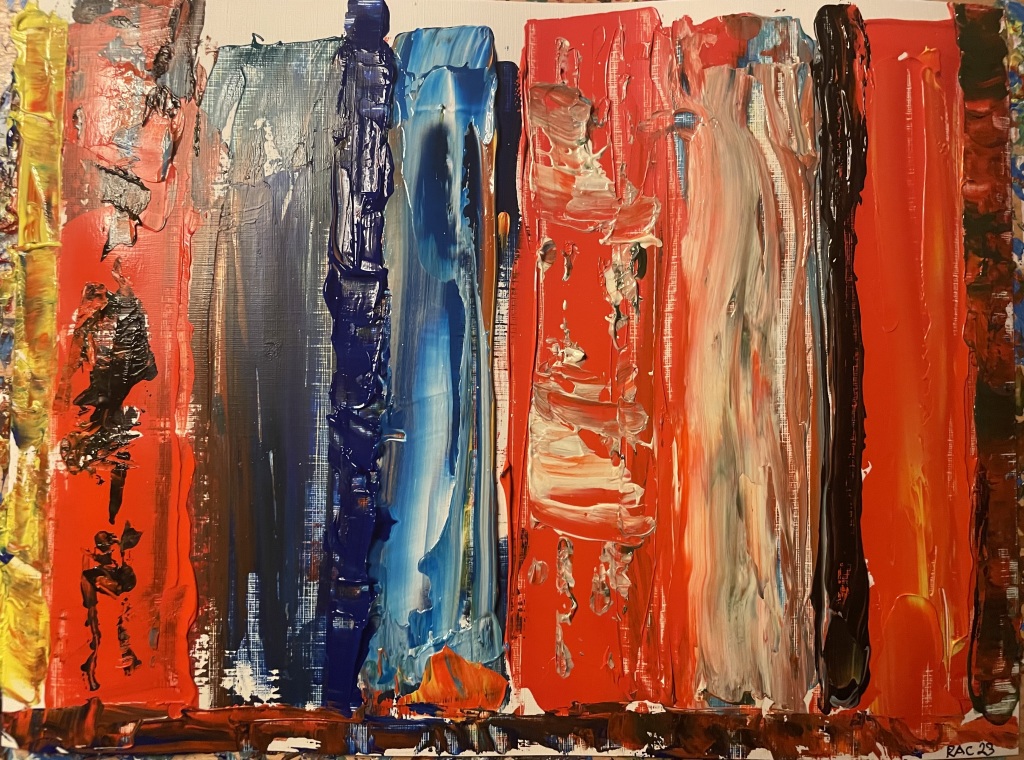 Akrylmaling på papir 24 cm x 32 cm. Nogle malerier bemalet kvadratisk 24 cm x 24 cm