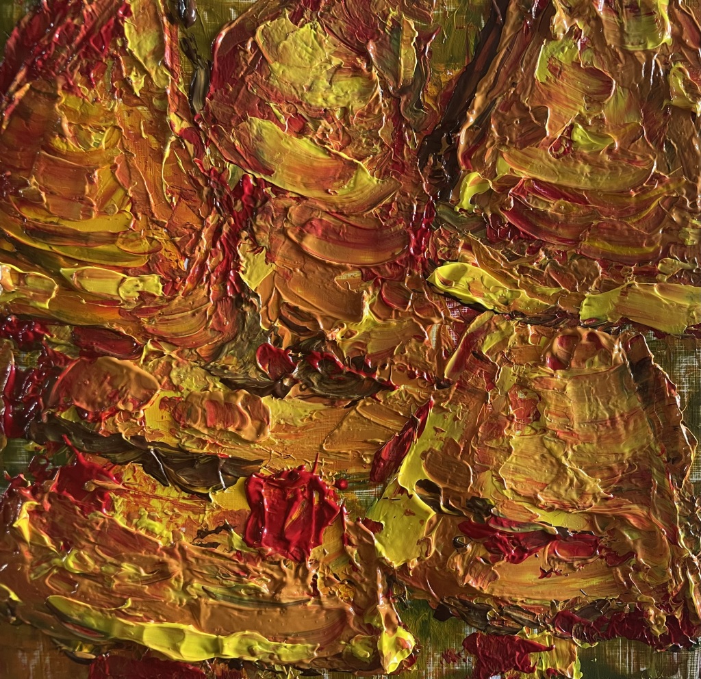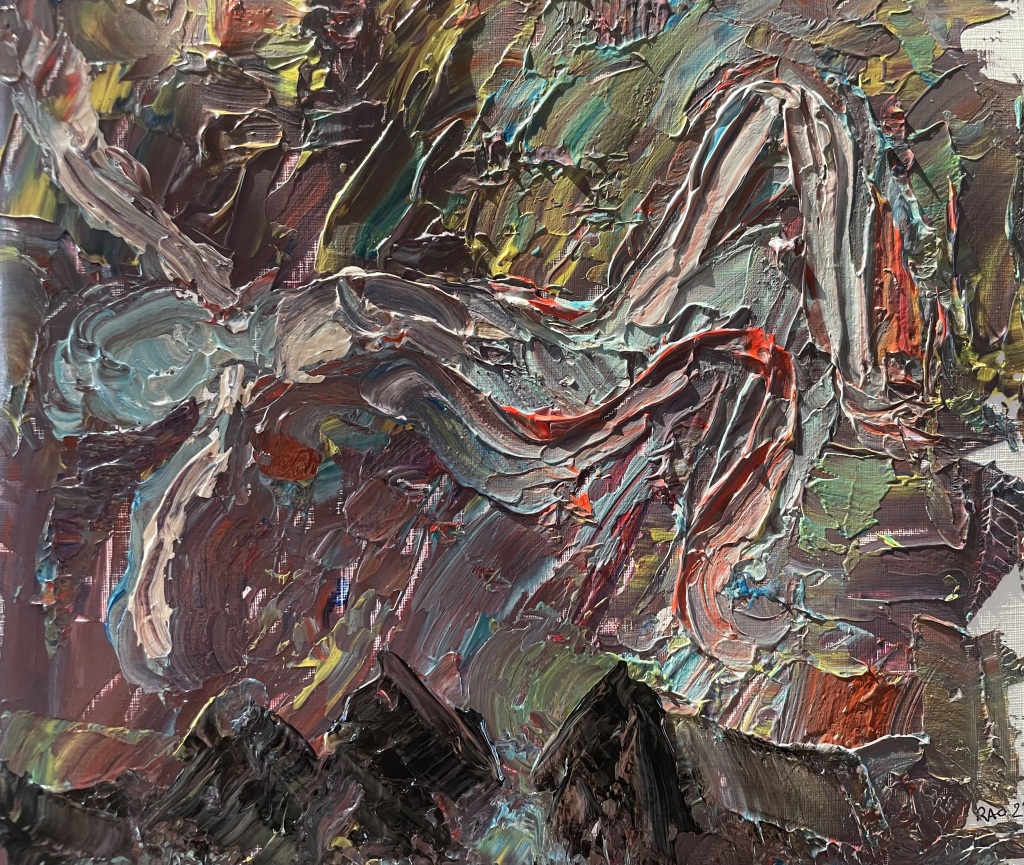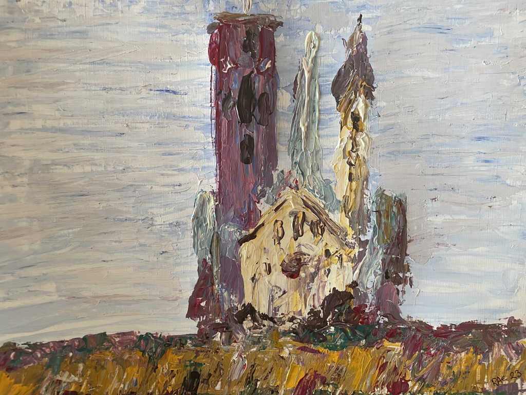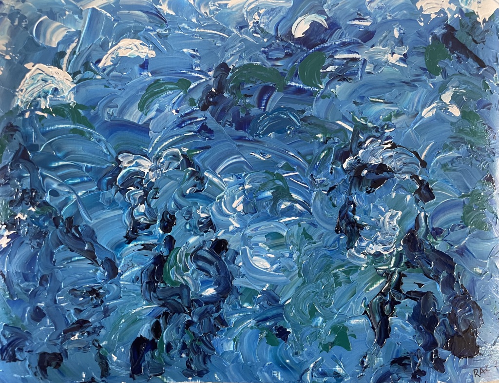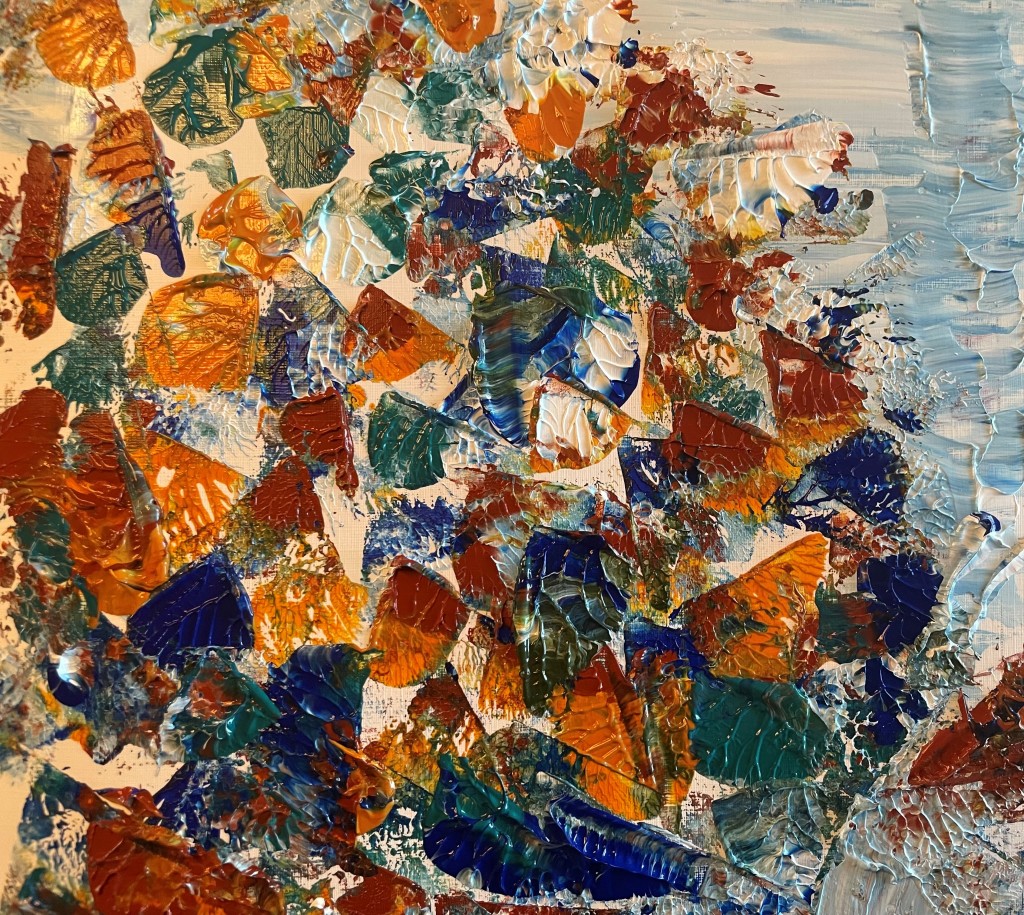 Akrylmaling på papir 24 cm x 32 cm. Nogle malerier bemalet kvadratisk 24 cm x 24 cm
