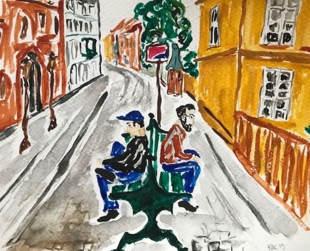 Illustrationer til novellesamlingen 'Byernes bænke'