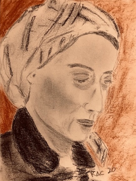 Illustrationer til romanen Lourdes udført i kul/pastel/blyant på papir (2021)
