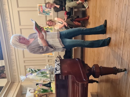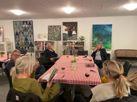Forfatter Susanne Kjærgaard læste op fra sin bog Tre små historier om det meste i Sønderby Kulturhus som oplæg til drøftelse med de fremmødte om bogens problematikker.