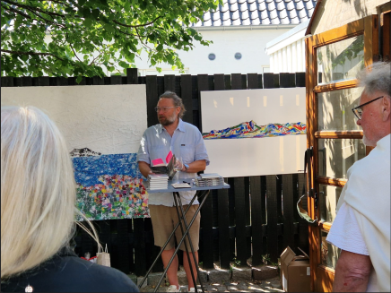Forfatter Jan Sverker læste op ved lanceringen af sin digtsamling Ordskaber. I forbindelse med fernisering af udstillingen af bogens illustrationer på galleri i Liseleje.