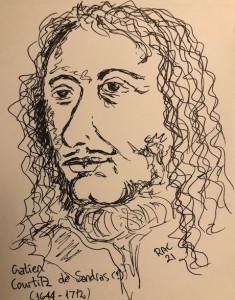 Tegningen er udført i tush af Rikke Aarøe Carlsen efter kobberstik fra internettet. Det er ikke klart, om kobberstikket forestiller Gatien Courtilz de Sandras, eller om det faktisk forestiller romanfiguren d'Artagnan.